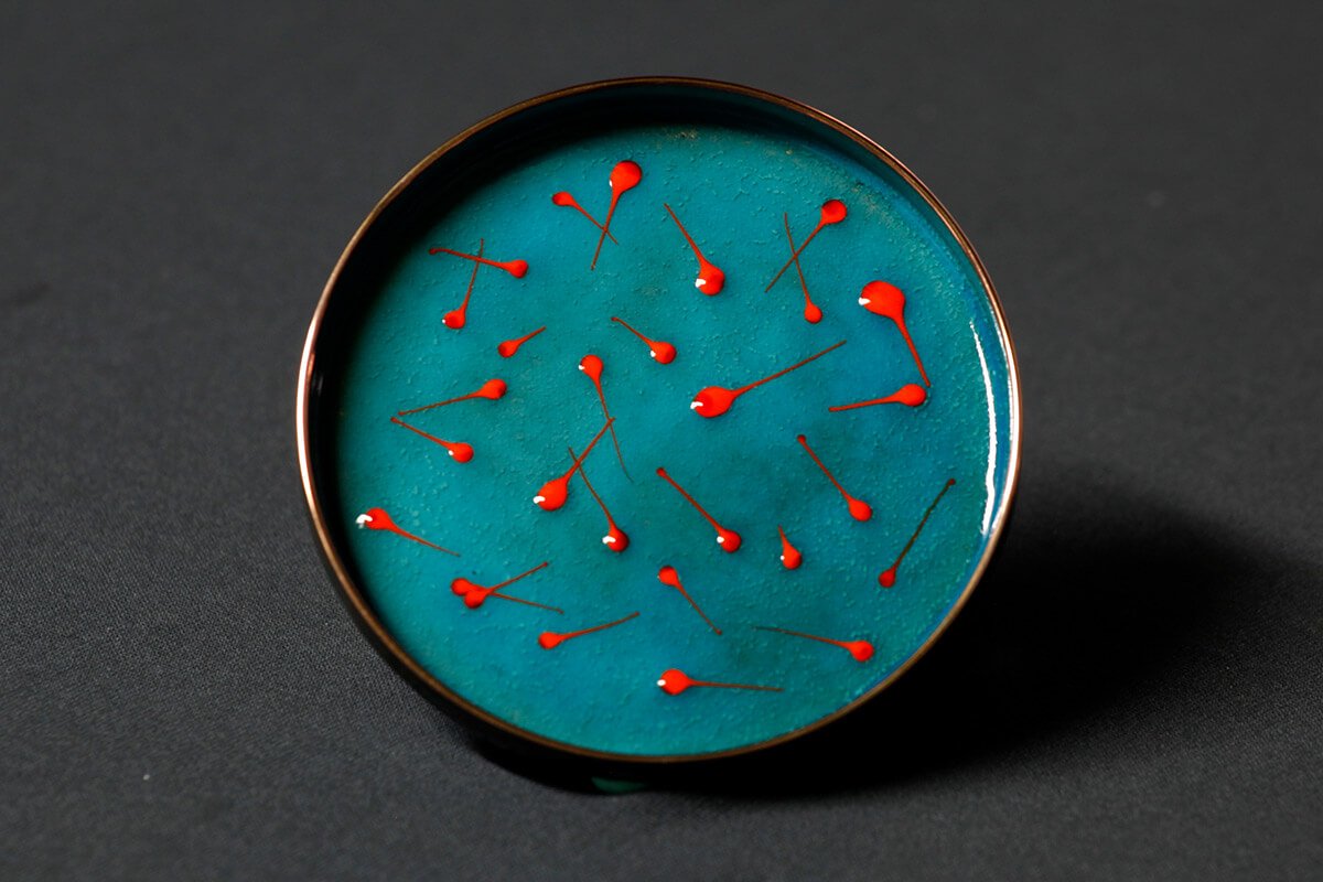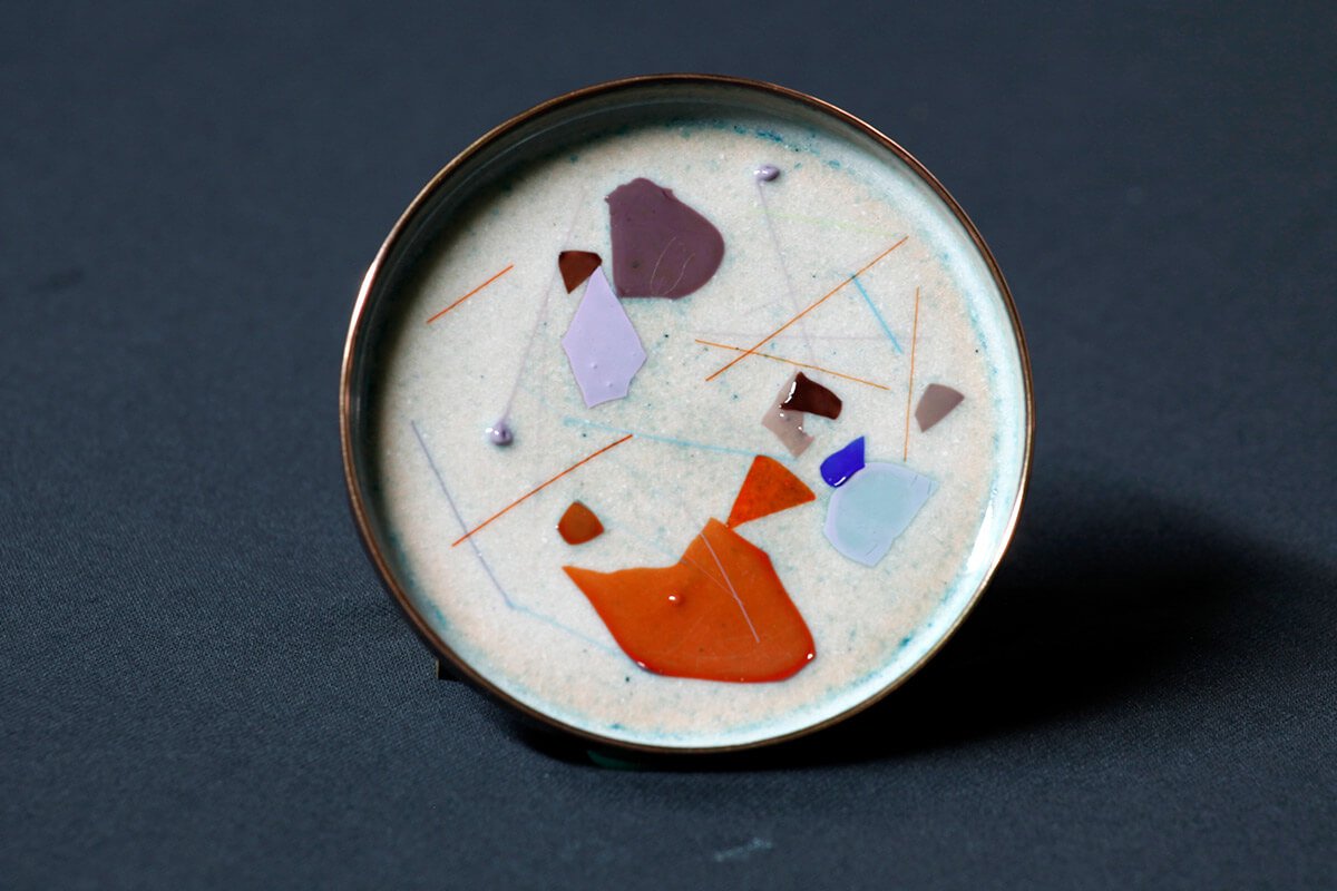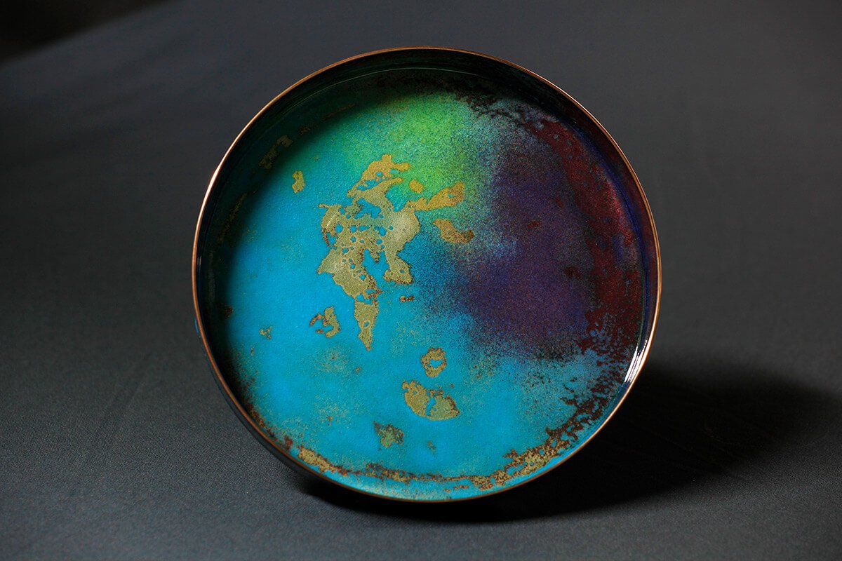 在赴美讀書時,呂燕華老師偶然機會裡接觸到金屬工藝,從此手上拿的畫筆變成了鐵鎚,寧靜的畫室響起了鏗鏘的打鐵聲。琺瑯是玻璃和金屬的結合,玻璃易碎金屬堅韌,兩種相反的特質卻不相斥。玻璃要經過高溫熱塑,才能成型;金屬要經過千錘百鍊,才能成器,兩者結合成為了琺瑯器,彷彿各自找到了美麗的重生。