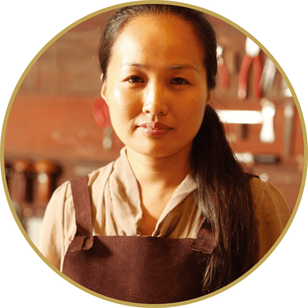 呂雪芬老師在輔大應用美術系時就主修金工,畢業後從事珠寶設計製作的工作,直到2004年自創植物語彙品牌,成立植物語彙金工概念坊,呂老師想要強調的是一種情感的傳達。開始以植物為主題,藉由植物來傳達情感這樣抽象的一個概念創作,到2010年後才開始加入不同材料,在2015年全部轉成器物的方向來創作,不同於首飾製作,器物需要花更長的時間並且要更專注,所以在教學這方面就會慢慢的想放棄而專心轉向創作。