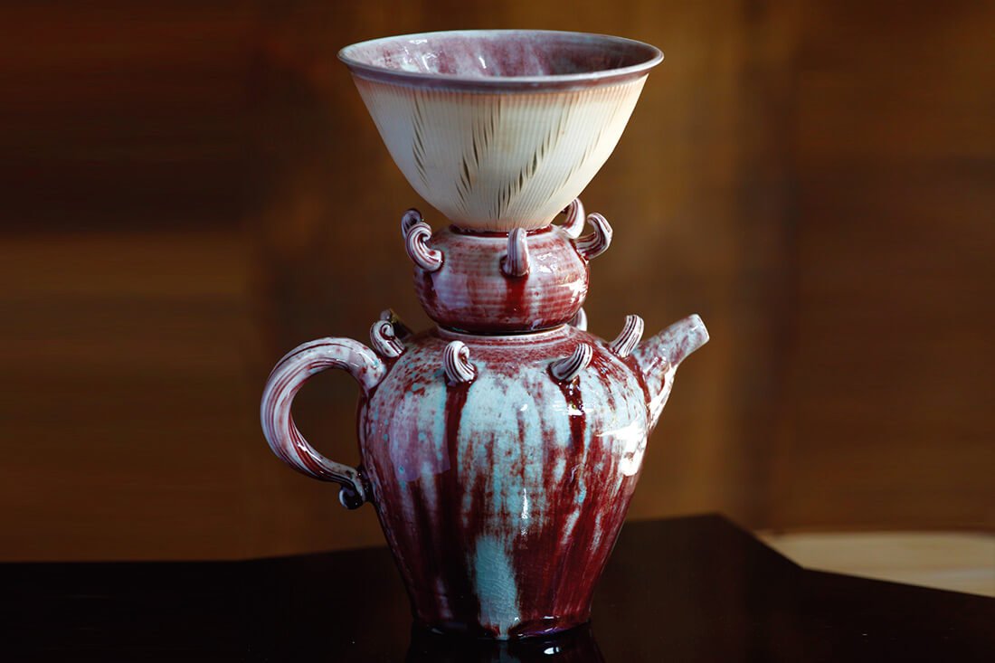 回到家鄉成立老土藝術工作室,李老師創作與教學並進,在家鄉二十幾年培育了不少學子,也在崙背這地區形成一個作陶的風氣,後於工藝中心的輔導下建立「崙背燒」區域品牌。