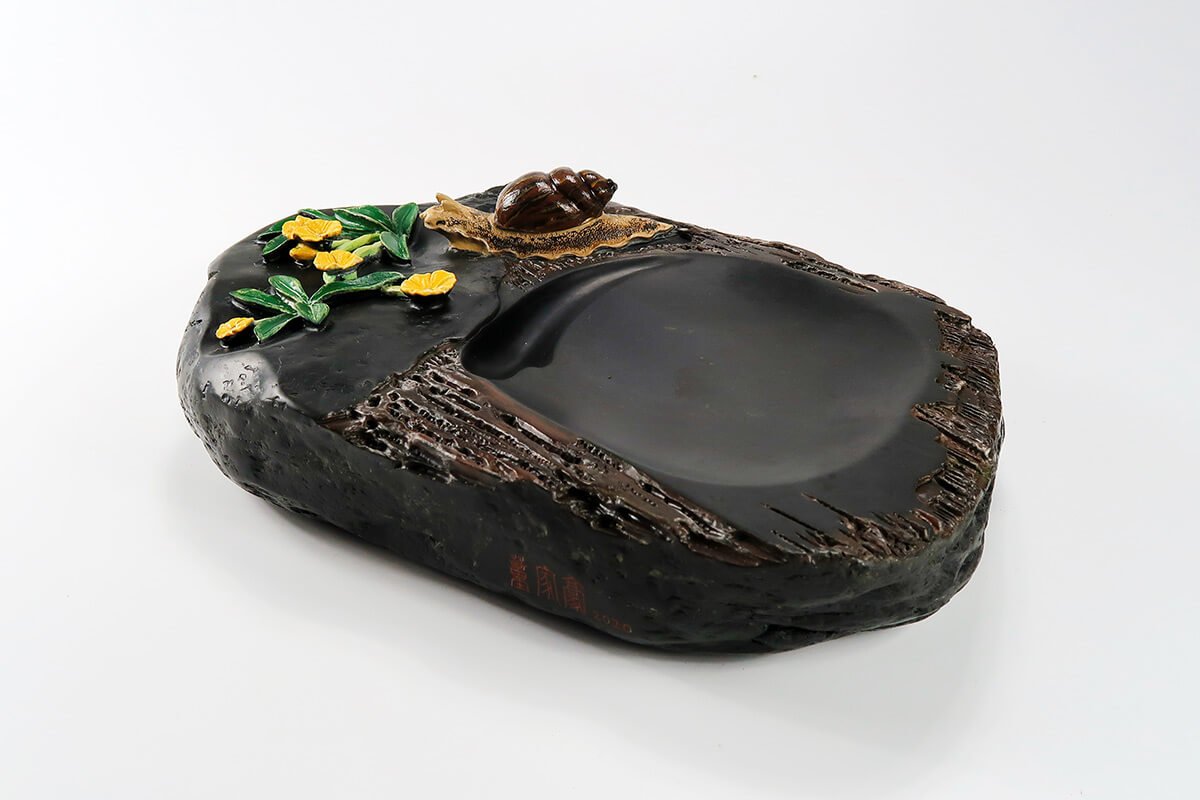台灣濁水溪特有的螺溪石,是個很適合當做硯台材料的一種石材,質地細緻並且顏色豐富。