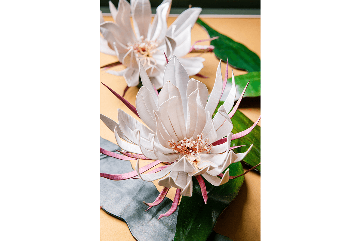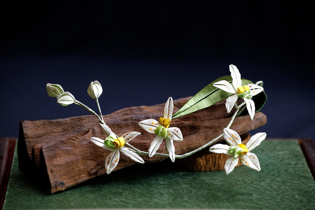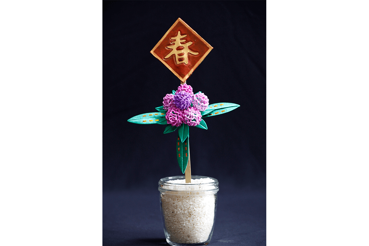 接觸春仔花是在偶然的機會下,看到同事親手製作,感到非常驚艷並被它的精緻美麗深深的吸引,於是便一頭栽進了纏花工藝的世界裡。在高齡90歲的謝陳愛玉阿嬤不藏私的將畢生所知所學