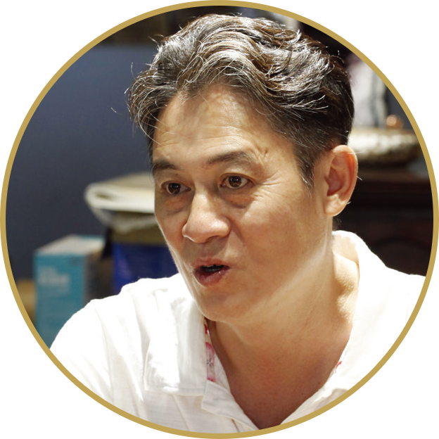 父親黃國男在40、50年代以前從事木雕工作,是辛苦勞動的行業,那時沒有電動機器可用,一刀一鑿全憑雙手,知道木雕業的辛苦,所以一直不希望子女從事木雕,但從小在木雕堆中長大的黃祈翔老師,在輾轉反覆從事許多行業之後,依然走向父親的道路,在36歲才正式成立工作室。
