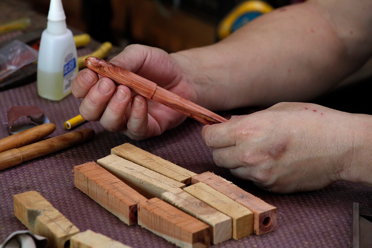 黃祈翔老師運用現代的車床技術和雕刻技巧,幾經巧思,成就一件件的作品。從基礎到專業再創新,短短幾年間黃老師製作的原木筆火速成長,並年年推陳出新,屢屢獲獎。黃祈翔老師的木雕創意之路,傳承父親的創作精神,更延續到後進,希望台灣木雕藝術能夠由工進階到藝的境界。